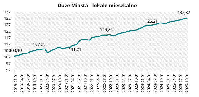Wartość indeksu urban.one dla mieszkań z dużych miast wzrosła o 0,07 pkt w ciągu miesiąca i wyniosła 132,32 pkt w październiku 2025 roku.